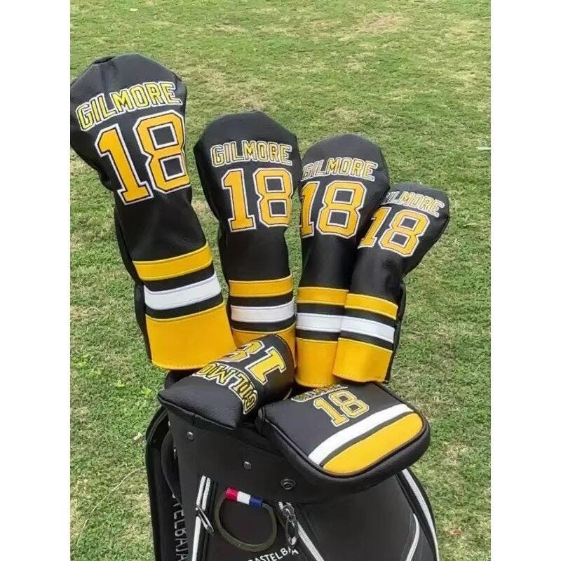 This bad boy is inspired by the iconic black and gold hockey jersey, reimagined as a driver headcover, worn by the legendary Happy Gilmore as he whacked his way to golf stardom (and maybe punched a few guys along the way).